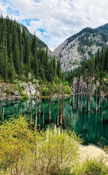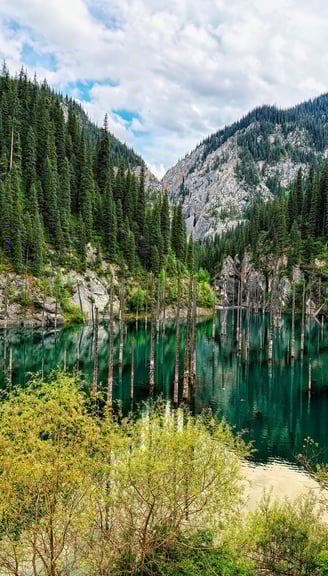 Our next adventure was to Kaindy Lake. Known for its submerged forest and crystal-clear waters, Kaindy is one of Kazakhstan's natural wonders. However, reaching this enchanting destination involves a bumpy ride through rugged terrain. The journey can be quite challenging, particularly for those with back issues, the elderly, or pregnant individuals. Despite the rough travel, the stunning beauty that awaits at Kaindy Lake is undeniable and well worth the effort for those able to make the trek.