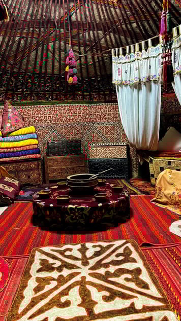Later, we made our way to the much-anticipated Kolsai National Park, where we had booked glamping accommodations at Kolsay Nomad. Nestled in the heart of pristine nature, our glamps offered a luxurious overnight experience. The only way to book these exclusive retreats is through their Instagram page, adding an element of exclusivity to our adventure.