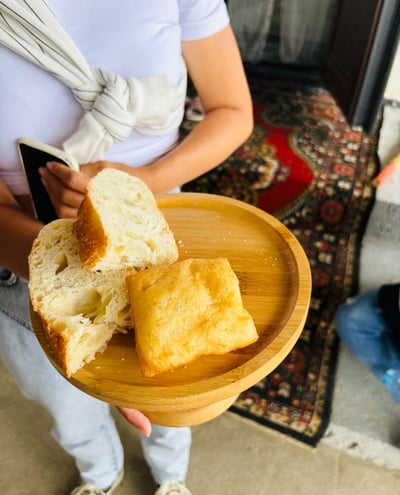 Upon our arrival, a local lady welcomed us into her home and introduced us to baursak, a traditional Kazakh fried bread. Warm and fluffy, baursak was the perfect comfort food to accompany our next activity. Equipped with these delicious treats, we set up a picnic in a nearby lavender field, the air filled with the sweet fragrance of the blossoms. The scene was picturesque, and the ambiance was enhanced by the strains of desi music, under which we taught our Kazakh driver and guide some lively Bollywood dance moves, adding fun and laughter to our cultural exchange.